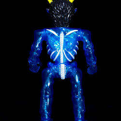 Pull in the clear blue soft vinyl and insert inside the figure.