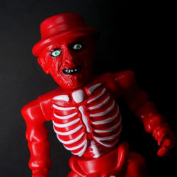 This Sofubi figure is inspired by a vintage Mexican bootleg Halloween candy bucket.